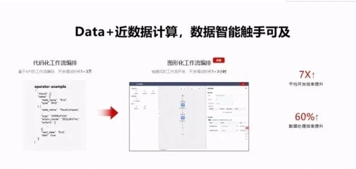 本次Data+带来全新的图形化工作流编排能力,将数据处理工作流从“代码化”升级为“图形化”的拖拽使用,开发周期从天级缩短到小时级,平均开发效率提升7倍。